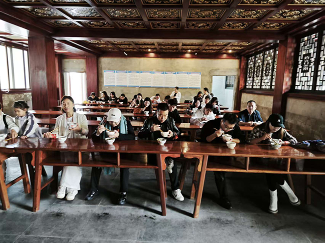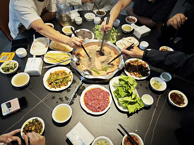 这也给了同事们品尝沿途美食的机会。当快到12点时,全体人员便从高速路出来,在一家牛肉馆品尝当地美食。全体销售部的人员齐聚一堂,有说有笑,好不热闹闹。